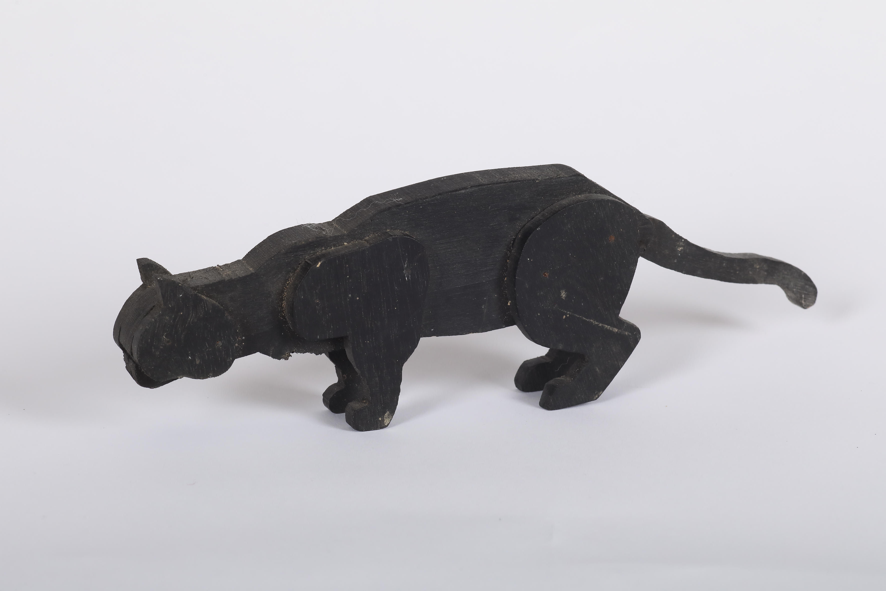 The toy is treated in its purest form, without detours, the lines are clean and taut, the planes architectural. It offers a universal representation of the animal, in the manner of the Egyptians. It is no longer “the portrait of a beast but rather the synthesis of a breed, generic characteristics, an attitude of absolute realism, the statuette rising to become a definitive effigy.”[11] The artist does not think in terms of subjects, let alone a “hierarchy of genres”: “To her, life is the subject”[12]. It is a game for children, and as Claude Roger Marx writes: “Under the influence of Caran d'Ache and Benjamin Rabier, the wooden toy, with its simplified joints, broke down the most comical attitudes.”[13] It would seem that the artist was influenced by a technique used by Caran d'Ache (1858-1909), which consisted of “cutting out silhouettes with a saw from plywood sheets; the limbs were attached to the body by a transverse axis that allowed them to pivot and give the animal the desired pose.”[14] t is a “fairly simple process involving thin, superimposed layers”[15] that “reduces the number of viewpoints to two, which can only be lateral.”[16] Although the limbs of our model are not movable, it does have an articulated tail that can be raised or lowered. These objects are nevertheless genuine sculptures, and were referred to as “artistic toys” at an undated exhibition[17].